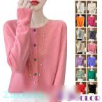 カシミヤタッチ ラウンドネック カーディガン レディース 長袖ニット 事務服 薄手 オフィス きれいめ かわいい かーでがんレディース 女 ボレロ 無地 UVカット