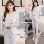 パンツスーツ レディースセットアップ カジュアル 上品 ストライプ 韓国風 30代40代 事務服 細身シルエット 制服 OL 入学式 卒業式 通勤 卒園式 卒業式 就職活動