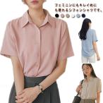レディース 事務服 襟付き シャツ 半袖 ブラウス 前開き シンプル ワイシャツ 春 夏 秋 レギュラーカラー 開襟 おしゃれ 大人 トップス フェミニン オフィスカジュアル フォーマル 入学式 卒業式 yシャツ