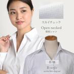 ブラウス レディース 七分袖 オフィス 白 ビジネス カジュアル シャツ 制服 開襟 コスプレ l-25-open メール便で送料無料 2枚は2通 WS