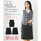 事務服 制服 ベストスーツ 3点セット レディース 洗える ベスト プリーツスカート フレアスカート S-3L ニッセン v0