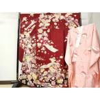 平和屋着物●振袖用長襦袢 無双仕立て 流水舞花地紋 紅海老茶色 半衿刺繍 正絹 逸品 CABB0265gh