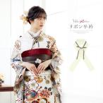 リボン半衿 ベロアリボンレース付「グレーベロア×オフホワイト」 和風館 フリル 半襟 洒落半衿 洒落小物 成人式の振袖、卒業式の袴に かわいい(メール便対応可)