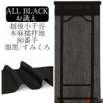 長襦袢 夏 単衣 越後小千谷 本麻襦袢地 80番手 黒 ブラック 墨黒 男性 半襟 半衿 女性 衣紋抜き 全て黒 特別仕様 ALL BLACK 誂え 仕立て上がり 仕立て付き