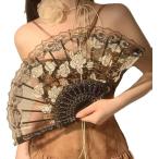 扇子 レディース おしゃれ 浴衣 花火大会 和装 和小物 和風 お祭り 夏 プレゼント (黒A)