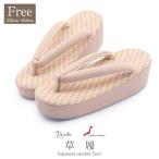草履 レディース 普段用 カジュアル草履 彩小径 フリー L くすみ ピンク パステル 幾何学 合皮 1枚芯 日本製 SALE