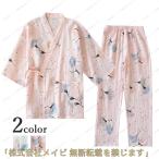 和装パジャマ ガーゼ綿100 レディース 花柄 7分袖 ロングパンツ 春夏用 ナイトウェア ホック留め式 部屋着 ルームウェア 浴衣 薄手