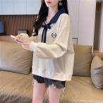 レディース Tシャツ パーカー 長袖 カジュアル服 折襟 学生 スクール 普段着 運動着 リボン 上衣 春秋 オシャレ 女子トップス