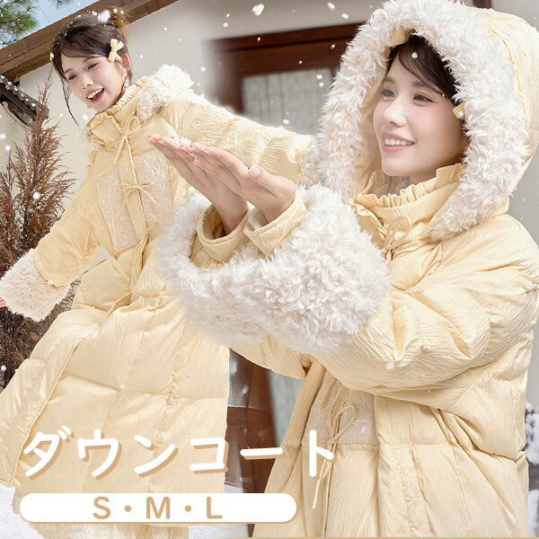 ダウンコート レディース もこもこ ロング丈 冬服 ロングコート ダウン ダウンジャケット アウター 冬 ファー 刺? かわいい 学生 通勤 通学 女の子 カジュアル 着痩せ コート 厚手 防寒 寒さ対策 冷え対策 あったか 暖かい イエロー S M L