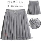 スカートレディース学生服スクールスカートプリーツスカートミニ丈無地グレーサイドゴムウエストゴム大きいサイズ