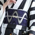 帯 半幅帯 単品 ニコアンティーク 細帯 月光ジオメトリー 数量限定 浴衣 着物 小紋 紺 銀 シルバー 波線 ウェーブ 金襴 日本製 女性 レディース 大人