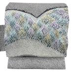美品 袋帯 逸品 証紙あり 長嶋成織物 菱 花 灰色 六通 正絹 中古