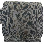 美品 名古屋帯 名品 人物 花唐草 金糸 箔 青灰色 正絹 中古