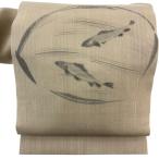 美品 名古屋帯 名品 夏帯 魚 薄茶色 正絹 中古