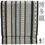 すごい値! 名古屋帯 未使用 本場筑前博多織 八寸 正絹 全通 濃グレー 草花文 カジュアル 博多織 新古品 仕立て上がり みやがわ neb01568