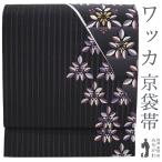 京袋帯 リサイクル 京WA・KKA ワッカ 遊禅庵 正絹 日本製 黒地 縞 草花 鱗文 カジュアル 春 秋 冬 中古 仕立て上がり みやがわ sb55177