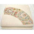 平和屋着物●全通柄 九寸名古屋帯 陶器文 練色 正絹 逸品 CABB9428hy