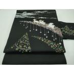 美品 名古屋帯 逸品 鍵盤 楽器 黒 正絹 中古