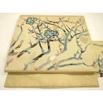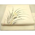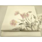平和屋着物●塩瀬 九寸名古屋帯 手描き 草花 正絹 逸品 DABB7282op