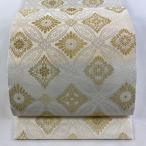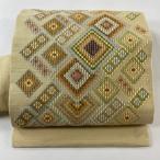 美品 袋名古屋帯 逸品 川島織物 落款あり 菱 幾何学 ベージュ 正絹 中古