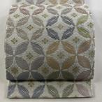 袋名古屋帯 逸品 川島織物 落款あり 七宝 花 クリーム 正絹 中古
