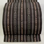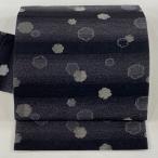 美品 名古屋帯 逸品 雪輪 段縞 黒 正絹 中古