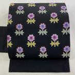 美品 名古屋帯 逸品 草花 黒 正絹 中古