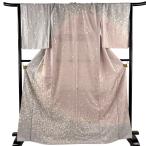 美品 訪問着 身丈170.5cm 裄丈68cm L 袷 花びら 金通し 刺繍 灰色 正絹 逸品 中古