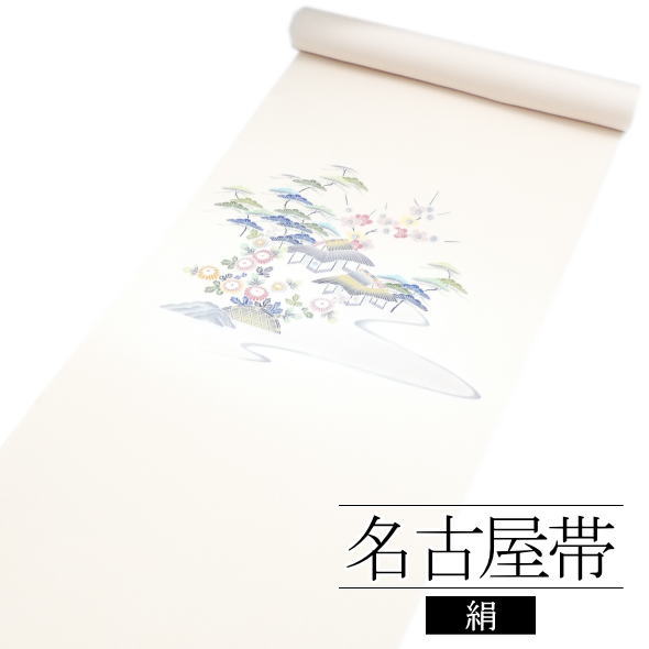 名古屋帯 二代 上野為二 茶屋辻柄 アイボリー / 御染帯 お太鼓柄 絹 和装 女性用 レディース 婦人用 未仕立て 送料無料