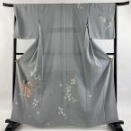 訪問着 身丈164cm 裄丈66.5cm M 袷 二代目 由水十久 落款あり 童 草花 青灰色 正絹 逸品 中古