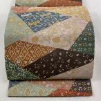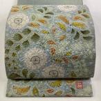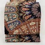美品 袋帯 逸品 華文 草花 相良刺繍 金糸 黒 六通 正絹 中古