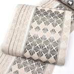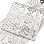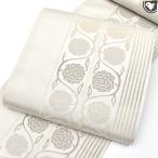 <単衣/夏/袷 オールシーズン帯> 西陣織 老舗機屋 謹製 雪輪よろけ織 九寸 名古屋帯 白 薄ベージュ