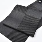 夏物 名古屋帯 夏大島 本場大島紬 正絹 九寸 オフホワイト 黒 グレー 変わり市松 花唐草 夏芯仕立て 新古品 仕立て上がり みやがわ sb55205