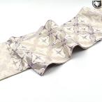 名古屋帯 未使用 本場筑前博多織 正絹 八寸 全通 白 ライトグレー 薄灰紫 薄ピンク 花菱 カジュアル 新古品 仕立て上がり みやがわ sb54990