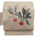 京袋帯 夏 夏帯 麻 グレージュ ベージュ グレー スイカ割り WAKKA 近江の麻 仕立て上がり 名古屋帯