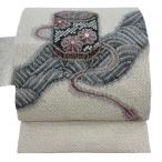 袋名古屋帯 逸品 うさぎ ネズミ ベージュ 正絹 中古