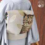 街着屋限定 [正絹 名古屋帯] 召しませ花 一重太鼓 京袋帯 キジトラ物語(亜麻色) 日本製 猫 ネコ きじとら 野良猫 (ym302)