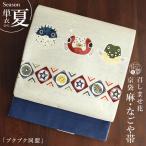[召しませ花 夏帯] 夏名古屋帯 プクプク同盟 (ベージュ) 麻 リネン 夏用 京袋帯 京袋名古屋帯 フグ ハリセンボン 魚 レディース 単衣 浴衣 夏着物 日本製 fj603s
