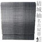 名古屋帯 未使用 結城紬 奥順 はたおり娘 八寸 全通 正絹 黒 白 グレー 変わり格子 カジュアル 新古品 仕立て上がり みやがわ sb55029