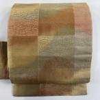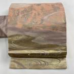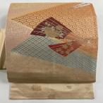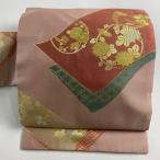 名古屋帯 優品 霞 幾何学模様 箔 銀糸 ピンクベージュ 正絹 中古