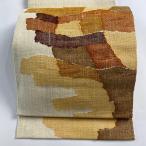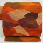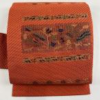 名古屋帯 優品 幾何学 オレンジ 正絹 中古
