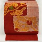 名古屋帯 美品 優品 八寸名古屋帯 松葉仕立て 草花 幾何学模様 茜色 正絹 中古