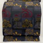 袋名古屋帯 優品 草花 葉柄 灰色 化繊 中古