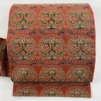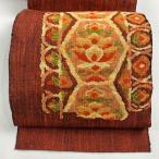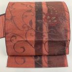 名古屋帯 優品 花唐草 箔 赤茶 正絹 中古
