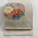 名古屋帯 優品 八寸名古屋帯 花丸文 金銀糸 クリーム 正絹 中古