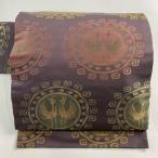 名古屋帯 優品 向かい鳥 金糸 灰紫 正絹 中古