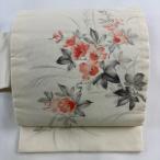 名古屋帯 美品 優品 夏帯 絽 枝花 草花 刺繍 クリーム 正絹 中古