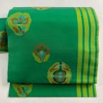 名古屋帯 優品 草花 縞模様 緑 正絹 中古