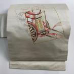 名古屋帯 優品 色紙 御所車 金銀糸 箔 クリーム 正絹 中古