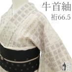 本場牛首紬 着物 未使用 正絹 練色 花模様 変わり市松 上質 カジュアル 新古品 仕立て上がり 身丈160 裄丈66.5 Mサイズ みやがわ sb17091